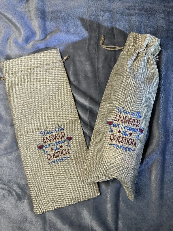 Make your holiday celebrations even more special with our delightful embroidered wine bags. Whether you're gifting a bottle to your favorite hostess or sharing festive moments with friends, these bags bring charm, humor, and a touch of elegance to every occasion.